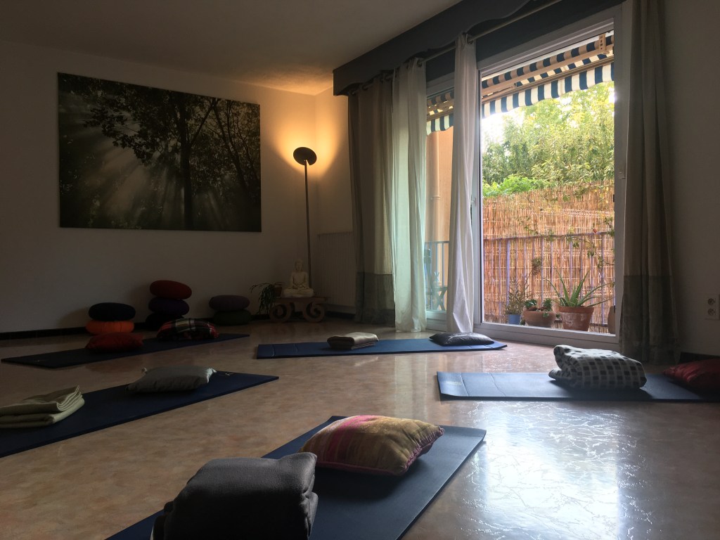 Matériel sur place : tapis, coussins, couverture.